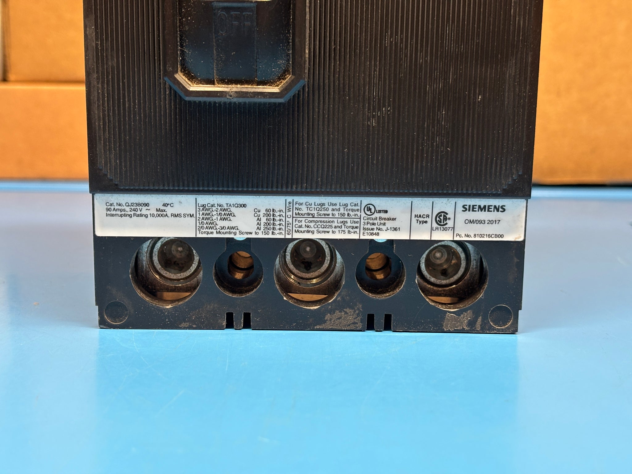 Siemens QJ23B090 90A 3-Pole 240V Molded Case Circuit Breaker – New Open Box